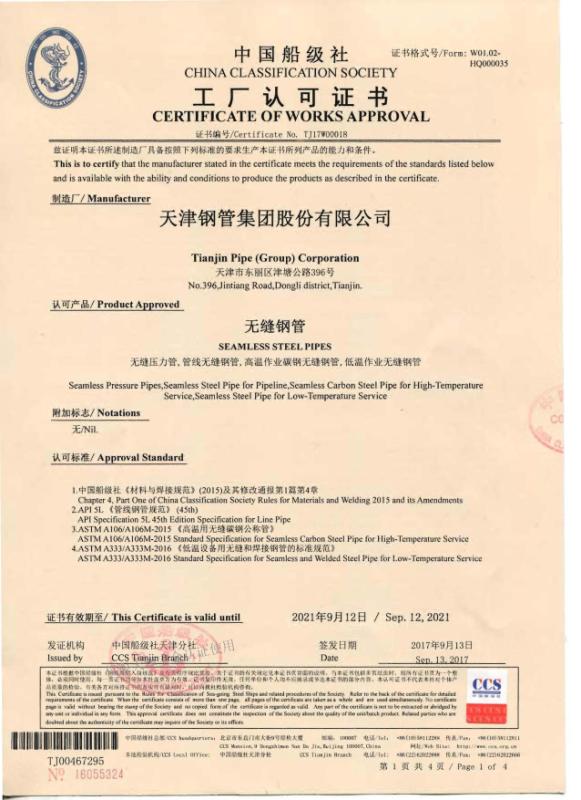 好多客戶買鋼管問生產企業是不是有船級認證,也就是國家對船舶用無縫鋼管的生產企業辦法的證書,買船舶用管找天津鋼管集團股份有限公司沒問題。天津大無縫鋼管廠報道www.m.dlhyjx.cn